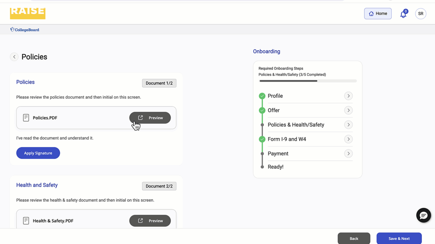 - Click the Preview button to download the Health & Safety information and read before you sign.