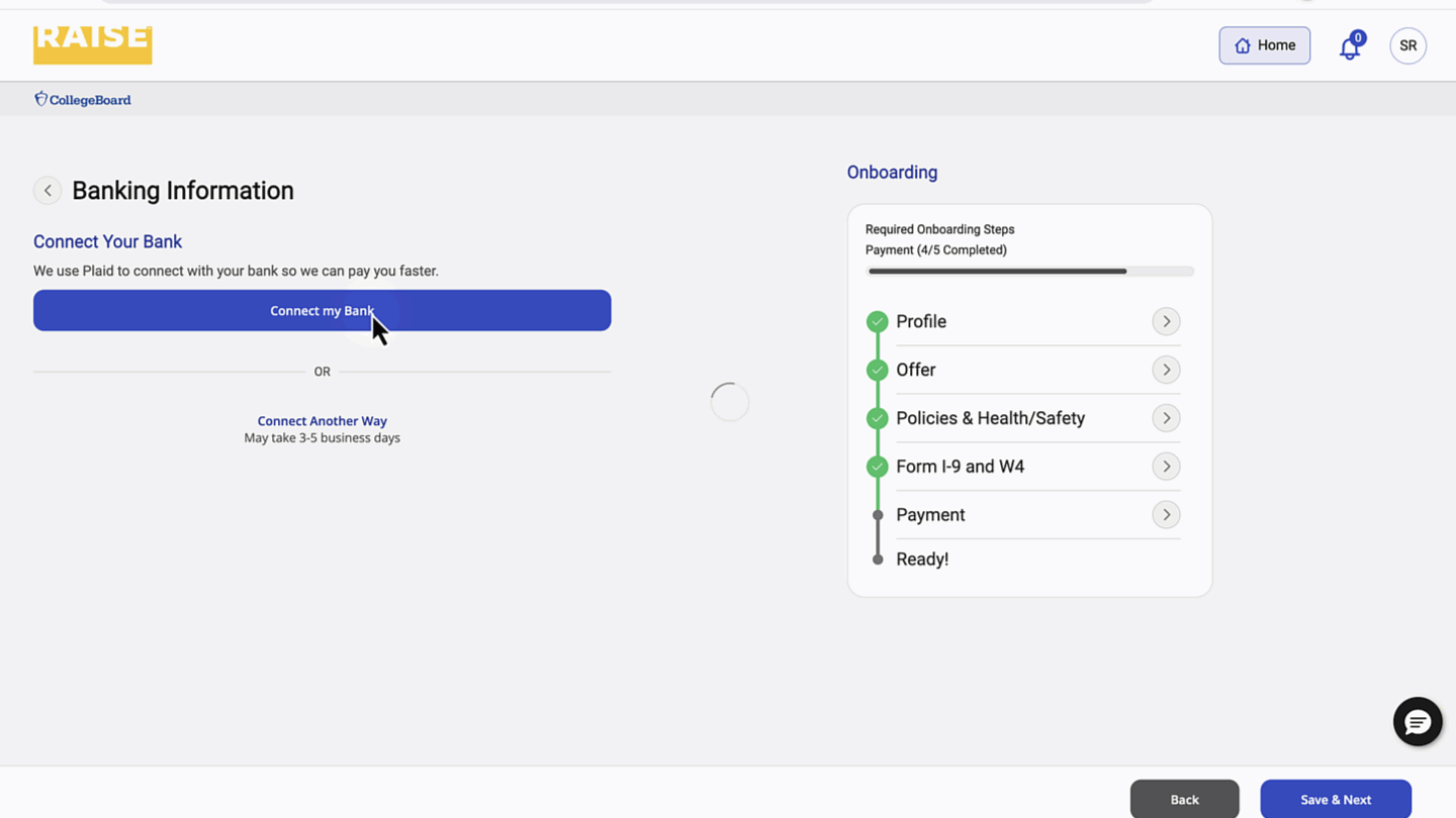 - If you opt not to connect your bank with Plaid, choose Connect Another Way. This method may take longer for you to receive payment.