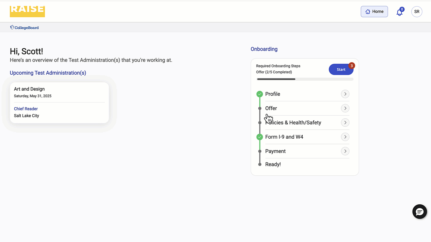 - Click the Chat button in the bottom right corner to open a chat conversation with Raise.